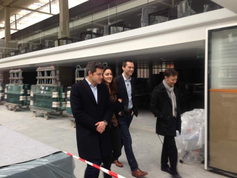 Above: Airbnb CTO and cofounder Nathan Blecharczyk (second from right) tours Station F in Paris with director Roxanne Varza (second from left).
