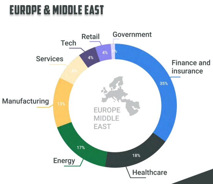 Above: Some of the key targets of ransomware in Europe and the Middle East.