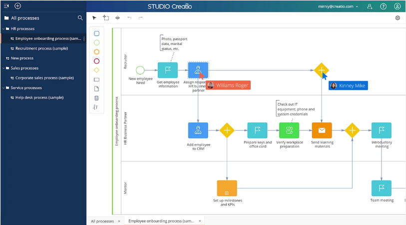 Founded in 2013, Boston-based Creatio was initially known as BPM’Online before a rebrand in 2019. The company offers a low-code studio that enables businesses to automate any of their internal processes in minutes through a drag-and-drop rules-based interface. For example, the myriad steps involved in a repetitive employee onboarding process, such as sending back-and-forth emails and uploading documents, can be fully automated with Creatio.