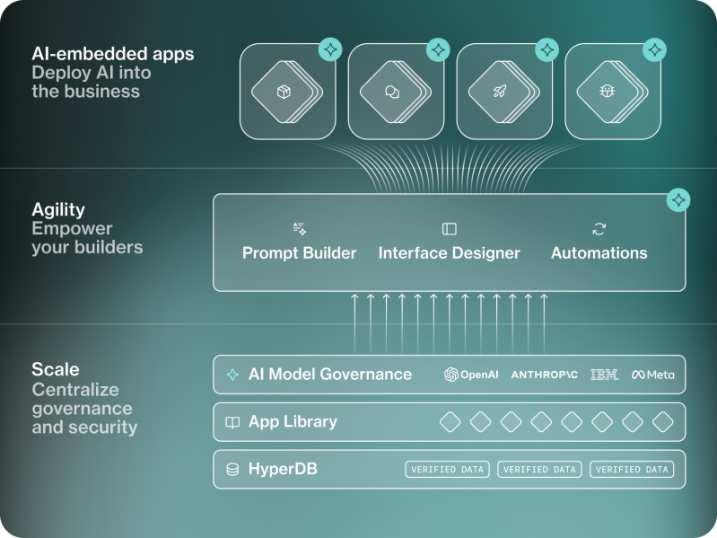 The additions include App Library, which allows companies to create standardized AI-powered applications that can be customized across an organization, and HyperDB, which enables integration of massive datasets of over 100 million records.