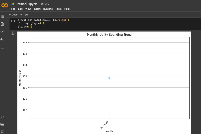 However, it ultimately generated an inaccurate graph showing just one month’s utility spending, failing to recognize the sheets included a full year’s worth broken out by months. When I asked it to revise, it gamely tried, but ultimately couldn’t produce the correct code string to answer my prompt.