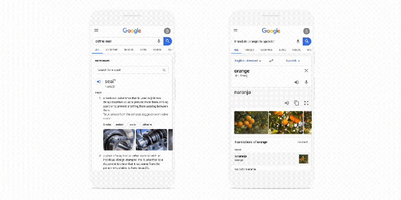 As for the new visuals, which also begin rolling out today in English across all language translations, they accompany translations of words and their definitions to provide additional context. This could be useful, Google says, with words that have multiple meanings like “seal” or words like “avocado” that aren’t commonly used in all dialects or regions. Only nouns are supported initially, but Google plans to expand from there.