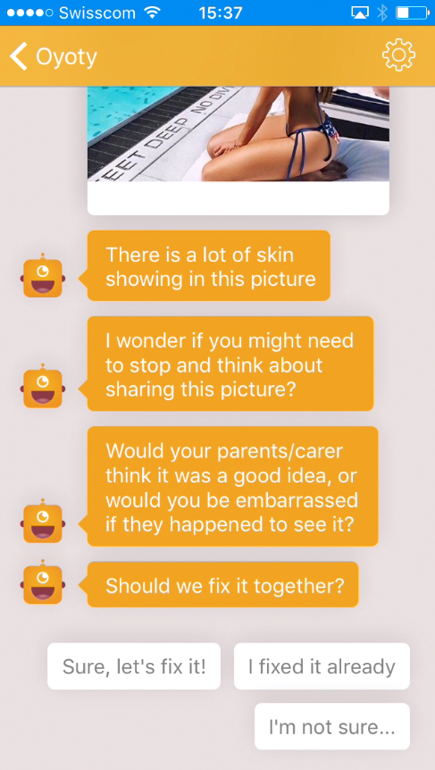 A few years back, Privately launched a consumer-focused mobile app called Oyoty, which serves as a demonstration of its technology. Oyoty, in its original guise, was a downloadable mobile app that linked to users’ social accounts (Facebook, Instagram, and Twitter) — anylizing posts for “problems” and intervening when necessary. Its automated bot might recommend that a child not share sensitive information, such as a phone number, or alert them if they’re showing too much skin in a photo.