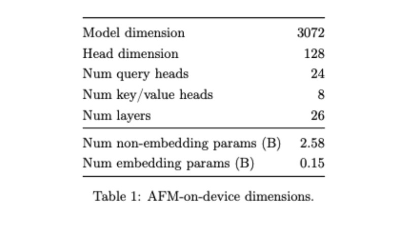 The on-device model, dubbed AFM-on-device, contains about 3 billion parameters — far smaller than leading models from companies like OpenAI and Meta, which can have hundreds of billions of parameters. However, Apple says it has optimized the model for efficiency and responsiveness on mobile devices.