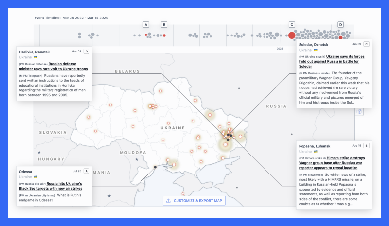 The company’s PDF overview of Primer Command includes screenshots with maps of Ukraine and the “Russia-Ukraine War” as a “breaking events” topic.