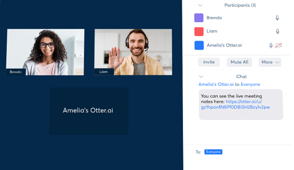 For transparency, Otter Assistant shows up on the call as a participant. And each other participant in the call can view the live meeting notes, with support for making notes and highlighting text visible to everyone.