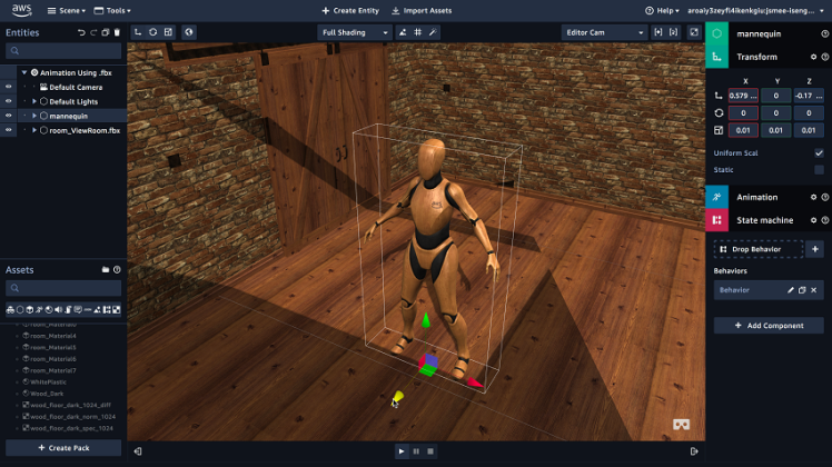The browser-based tool is available in limited preview today. At launch, Sumerian enables developers to put 3D models together in scenes for use in VR and AR applications. It includes an object library full of models that people can put to use, as well as support for importing assets from FBX and OBJ files.