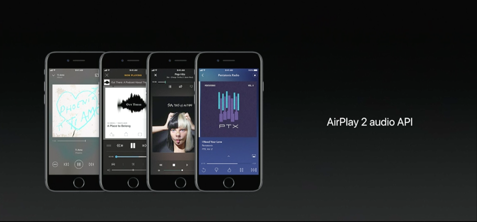 - Airplay 2: Adds multi-room audio support to iOS, with Apple Music and Apple TV integration. A big attack on Sonos.
