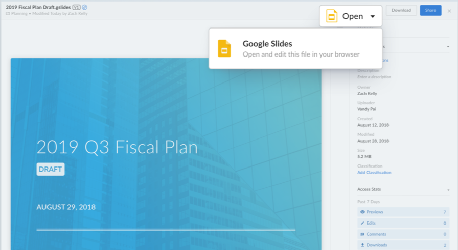Above: Box for G Suite integration: Google Slides inside Box