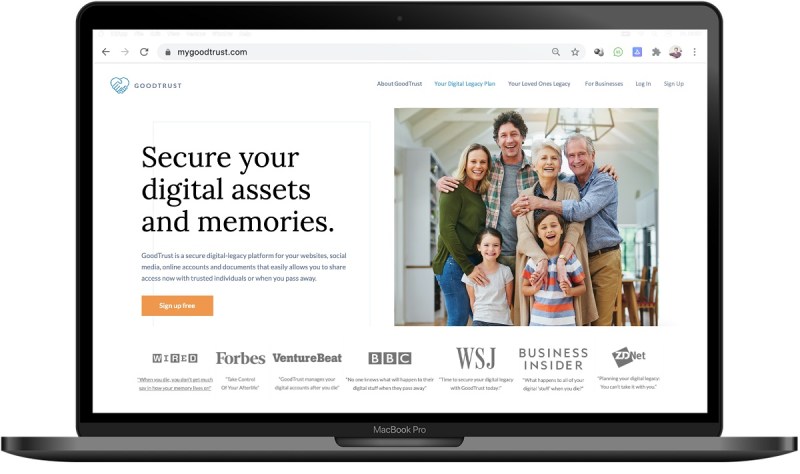 GoodTrust’s $40 account helps families that have lost someone take care of their loved one’s digital account (e.g. delete LinkedIn, memorialize Facebook, or extract Google Photos). The company can also secure a digital legacy (accounts, social media, documents, last goodbyes, etc.) via a subscription service at $70 a year.