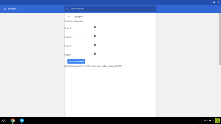 You can enable the new Quick Unlock feature by going to chrome://flags on a Chromebook. From there you can set up the feature and then unlock the Chromebook by scanning your fingerprint, as long as you’re already signed in. Then you can go into the Settings app and configure the feature in the Screen lock section. You can register as many as five fingerprints. Chrome Story reported the news earlier today and noted that the feature’s visible in the newest Chrome OS Canary build; in fact, it was included in last week’s dev channel update.