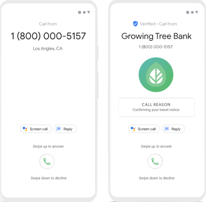 This before (left) and after (right) comparison shows the difference between a typical non-verified call and a verified call: