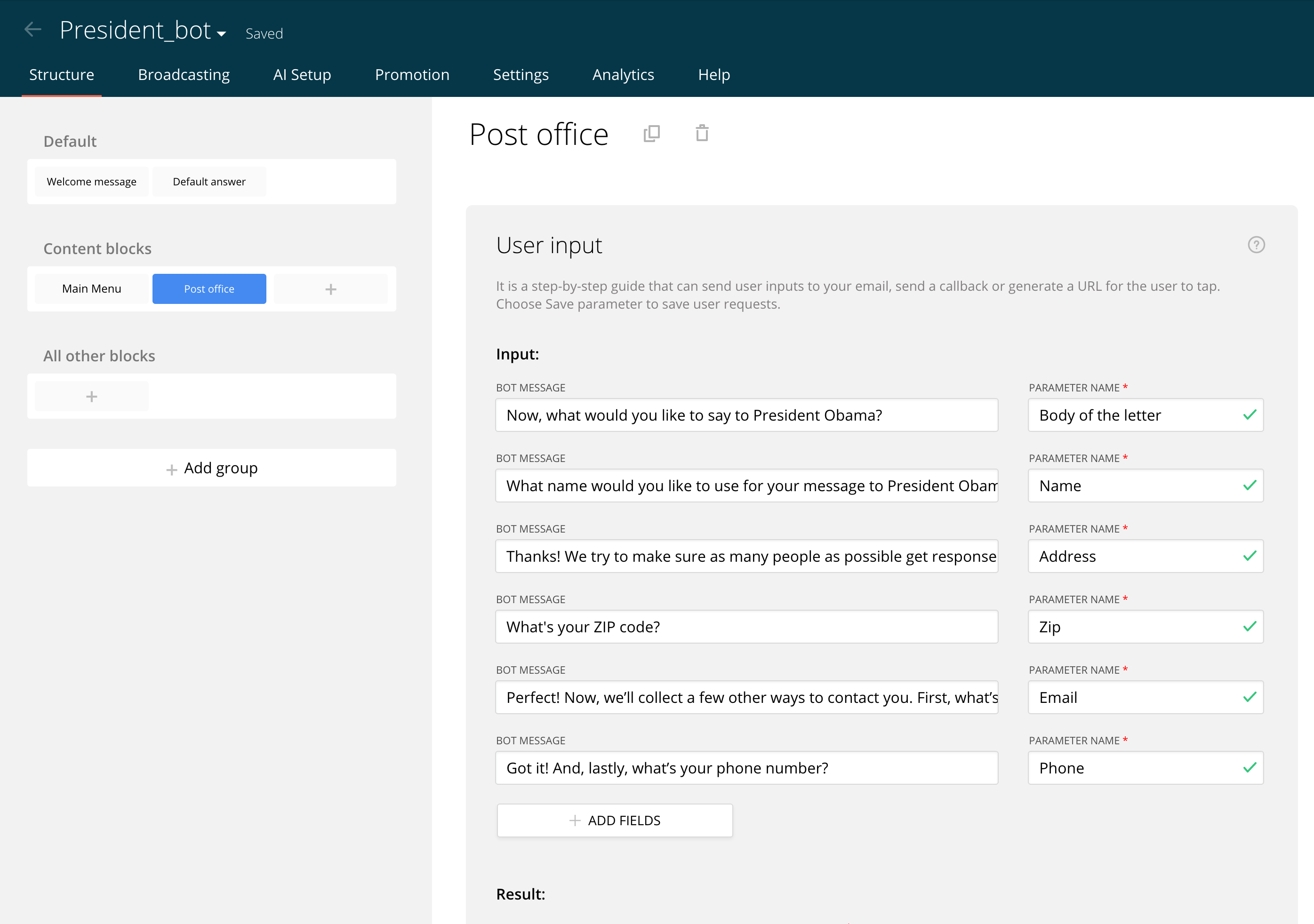 And voila! You just built a White House-worthy bot in 15 minutes. And that’s just the tip of the iceberg — there are so many more possibilities, since chatbot technology and frameworks are evolving and becoming more and more powerful.