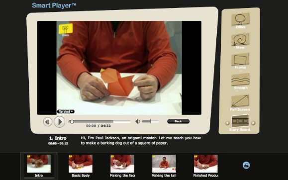 The videos are supposed to teach you how to do something, such as making a barking dog out of a square piece of paper (see below).
