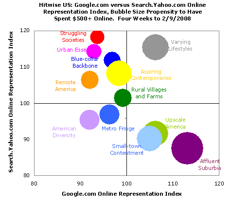 Google searchers are wealthier, buy more online — Hitwise numbers here. See chart for more.