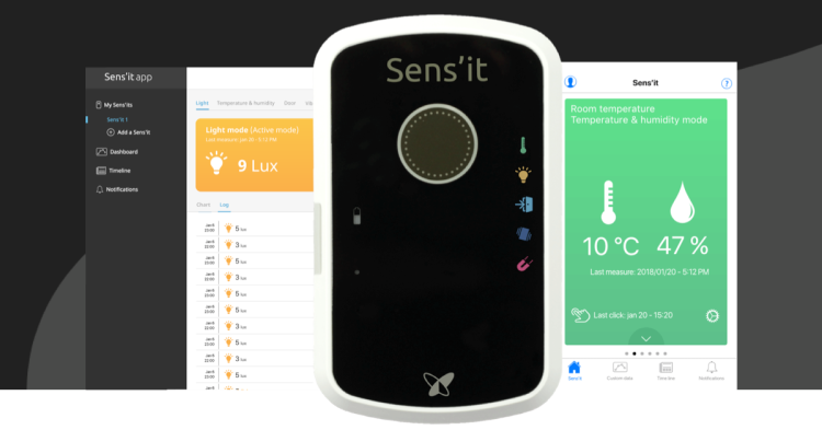 That includes Sens’it 3, a little IoT gadget that weighs less than 2 ounces and has sensors that detect things like temperature, light, motion, humidity, vibration, and magnets and Sigfox’s communications system to send data remotely. The device connects to the Sigfox communications network, monitors data through the company’s cloud, and then displays the data via a sensit.io application that is being rolled out.