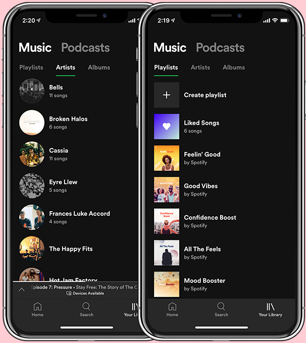 Above: Podcasts and Music are equal citizens