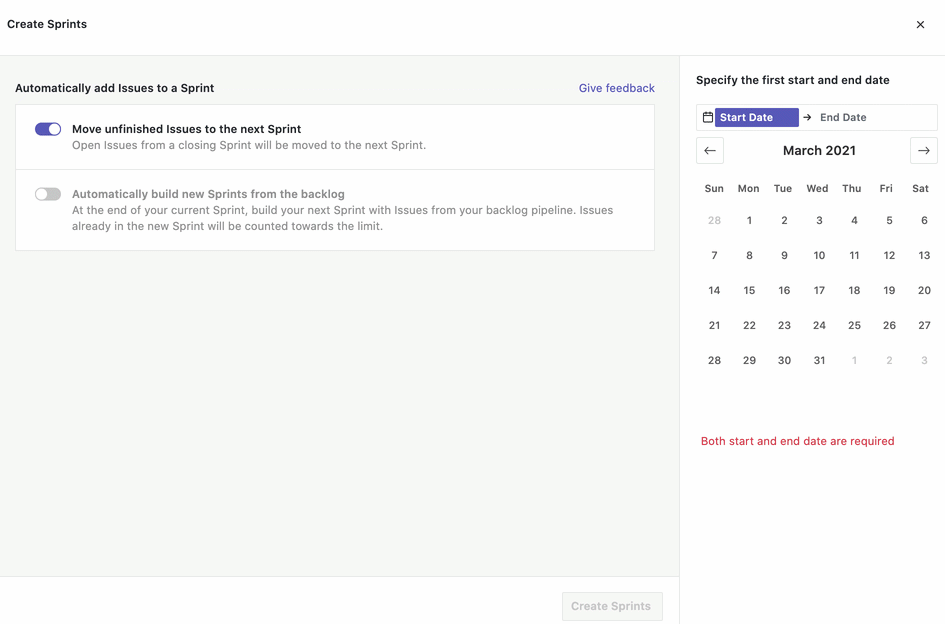 Users can automatically create up to 3 new sprints at a time, saving project managers from manually creating and naming the sprints. Additionally, it automatically assigns issues based on a team’s so-called “velocity,” an agile development metric that represents the amount of work a team can handle during a sprint, and carries over any unfinished work to the next sprint.