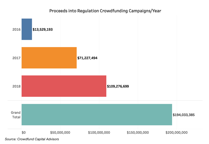 2018 saw triple digit growth in unique offerings, proceeds, and investors. More importantly, startups are successfully using Regulation Crowdfunding to raise meaningful capital in a relatively short period of time and at costs that are less than a typical Regulation D offering.