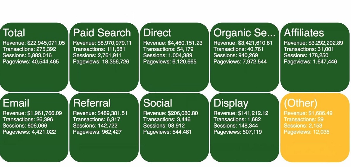 At a minimum, most companies have five to eight martech systems in place, and some ecommerce companies use dozens. One recent analysis shows nearly 7,000 cloud-based martech systems on the market. ConDati Marketing Analytics addresses this problem by aggregating marketing data in real time and delivering it to marketing leaders via visualizations that show the financial performance of online marketing campaigns, including rolling up revenue, other goal conversions, and costs from multiple sources.