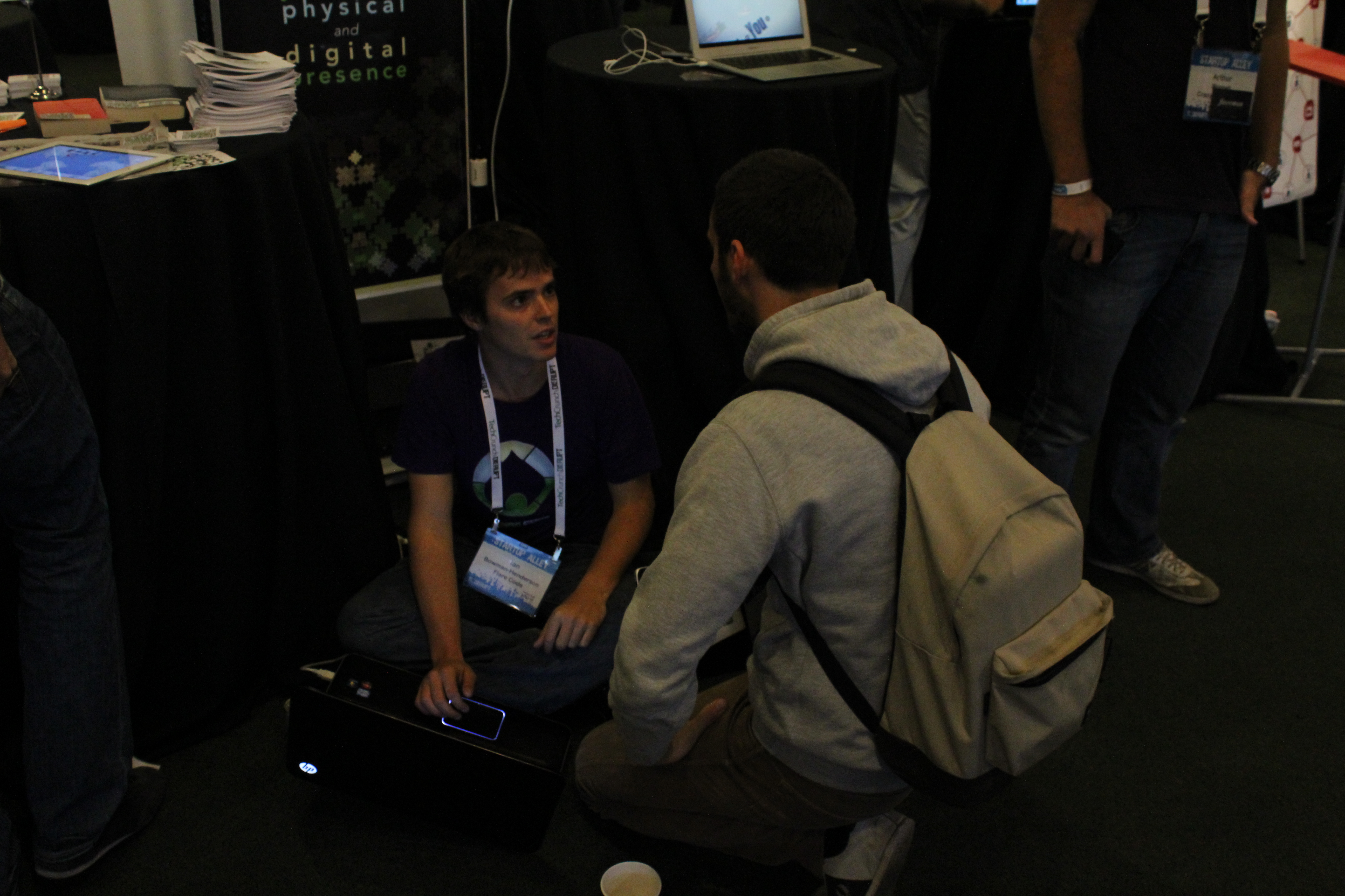 On Thursday, Arrington left the tech news publication he founded in 2005. It put a bit of a damper on the whole show, and nowhere was that more apparent than the TechCrunch team itself. The news was all over their faces, and you can see it in some of the photos from the show. (Pictured on the right are TechCrunch writers MG Siegler and Alexia Tsotsis.)