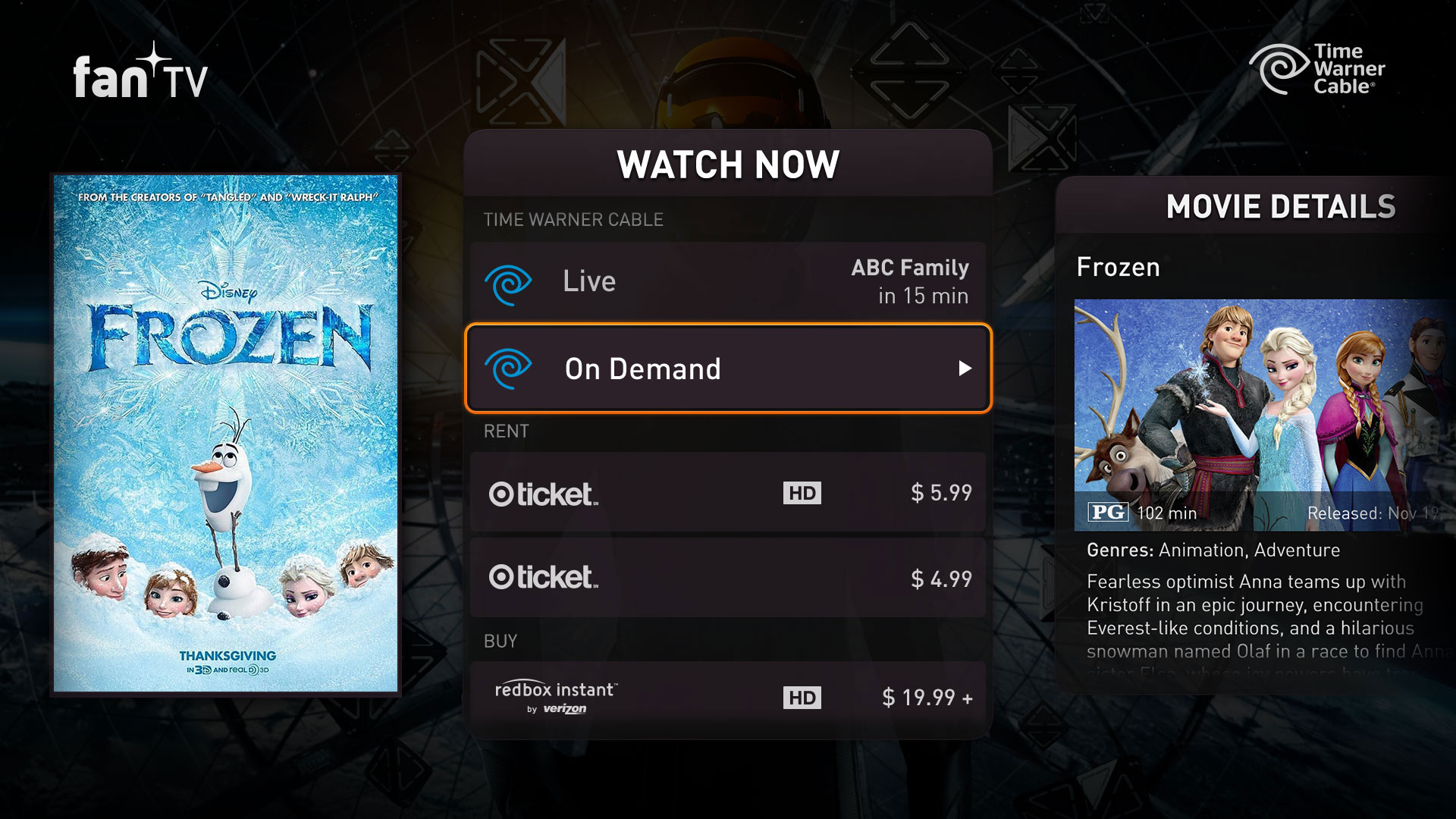 At launch, Fan TV will have support for just a handful of third-party services, including RedBox Instant, Rhapsody, Crackle, and Target’s digital video store. That’s significantly fewer services than the initial demo showed off a year ago.