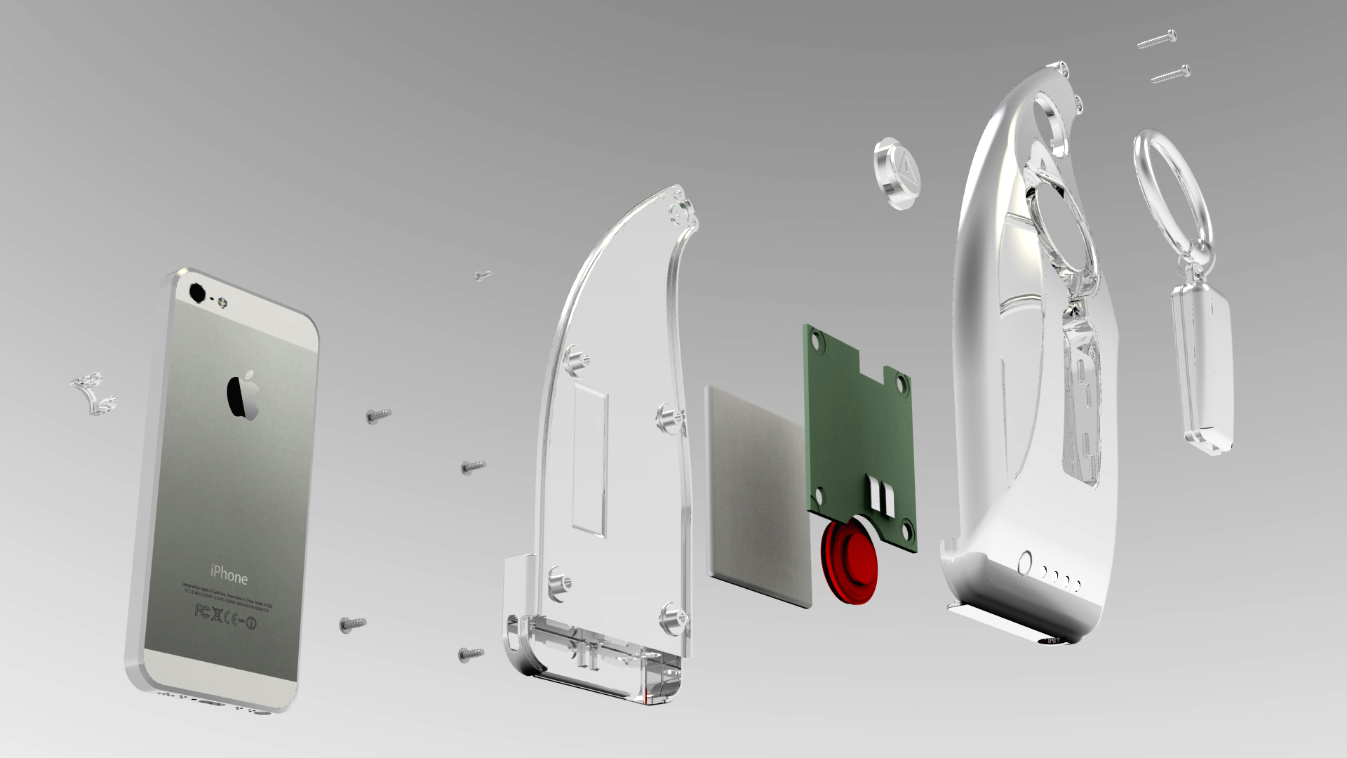The Halo device clamps onto your iPhone 5 with tiny torque screws (so a thief can’t easily remove it), and it sports a ring portion (the Halo Ring) that you’re supposed to hold when using your phone. If someone tries to snatch your phone, the Ring snaps off, and the alarm (which can reach ear-piercing levels of 130 decibels) goes off. The Halo Ring also includes a proximity sensor, which can trigger the alarm if it gets separated from your iPhone after specified distances.