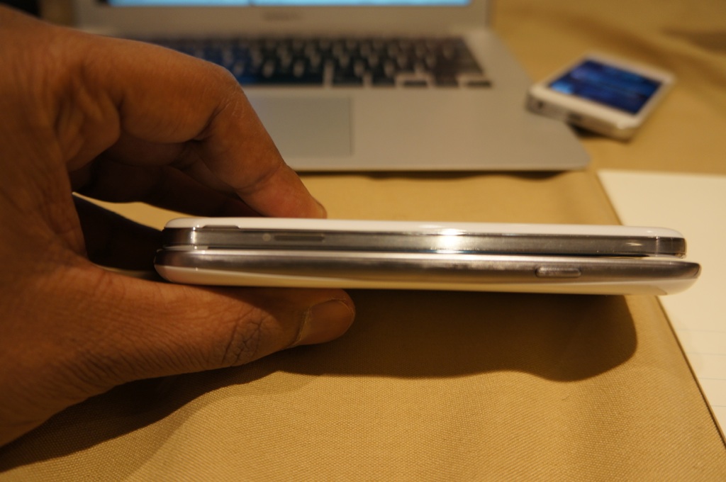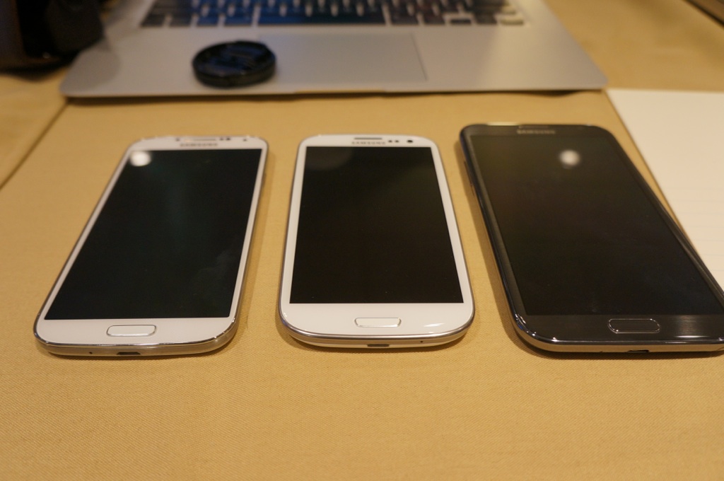 Even though it has a bigger screen than the Galaxy S III, the Galaxy S4 is actually thinner. When placed alongside its predecessor and the Galaxy Note II, it’s easy to see how Samsung’s design sense has become more refined over the past year.