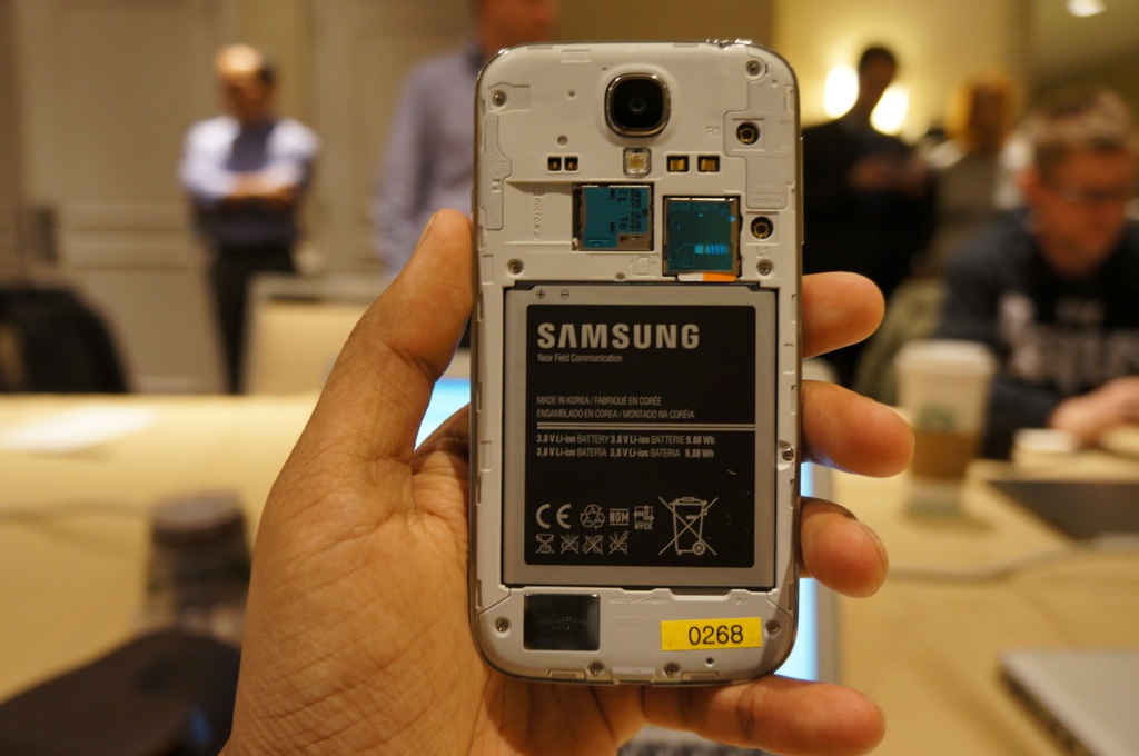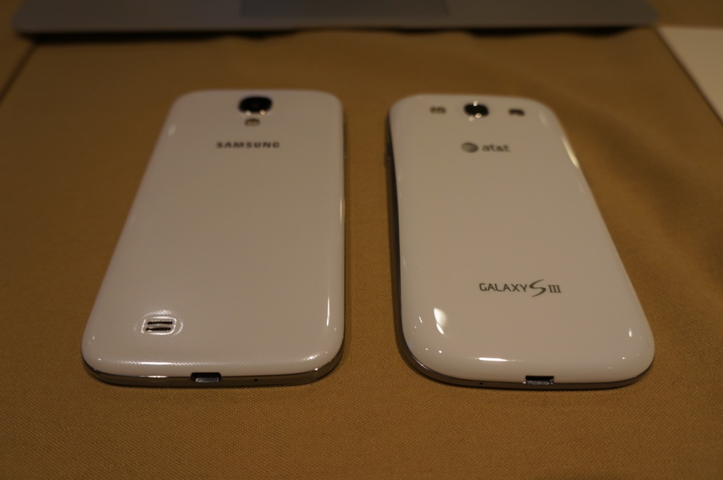 After having a chance to use the Galaxy S4 tonight, I was surprised how much more polished it felt than the Galaxy S III. It’s made of the same plastic, but it’s lighter and rests in your hand more snugly. The polycarbonate trim along the sides of the phone gives it a nice accent — even though it’s not as attractive as metal. I still prefer the more elegant metal design of the HTC One, but Samsung’s design certainly won’t disappoint its fans.