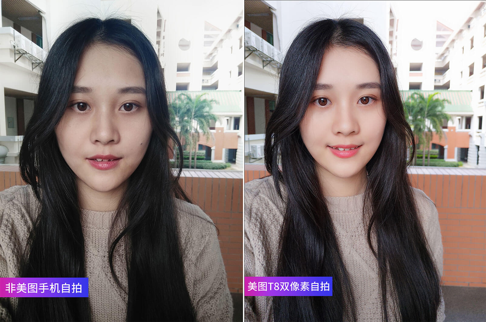 And since it’s a Meitu device, the T8 also includes the company’s artificial intelligence technology, which beautifies selfies. After a picture is captured, the software goes to work detecting the faces, skin tones, genders, and ages of everyone in the photo. Then it will apply techniques to improve the image, such as whitening teeth, eliminating skin flaws, and applying a stylish filter — all in real time.
