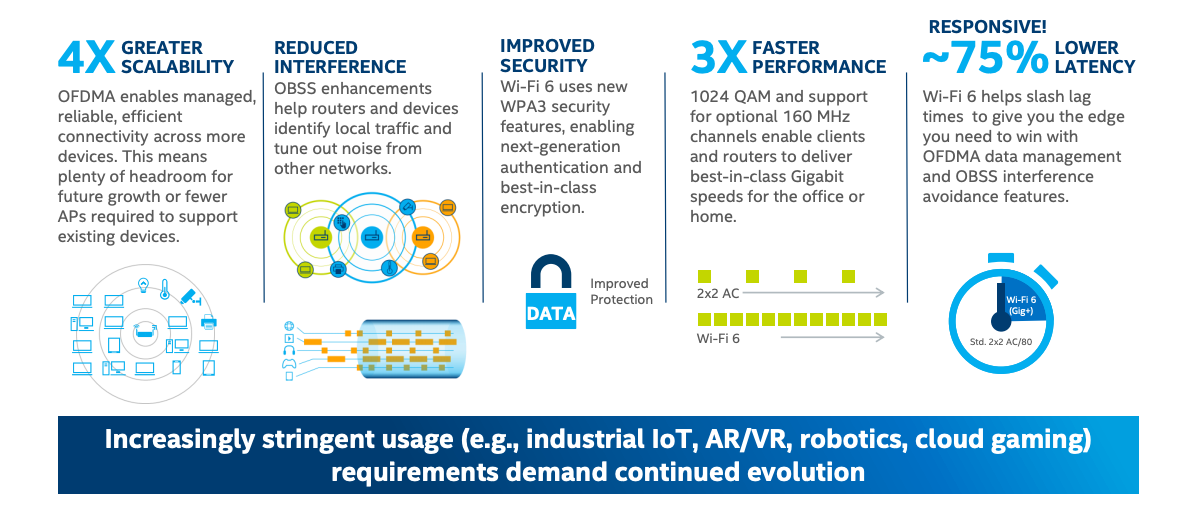 - Wi-Fi 6/6E offers incremental gains in single-client performance but big leaps in multi-device environments, including homes.