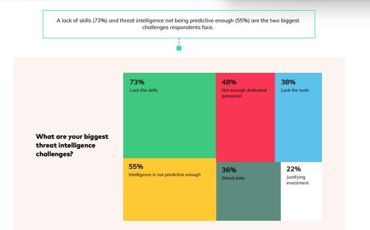 The findings revealed that 73% of IT security managers lack the necessary threat intelligence skills. This is despite the fact that threat intelligence is a key piece of risk management programs.