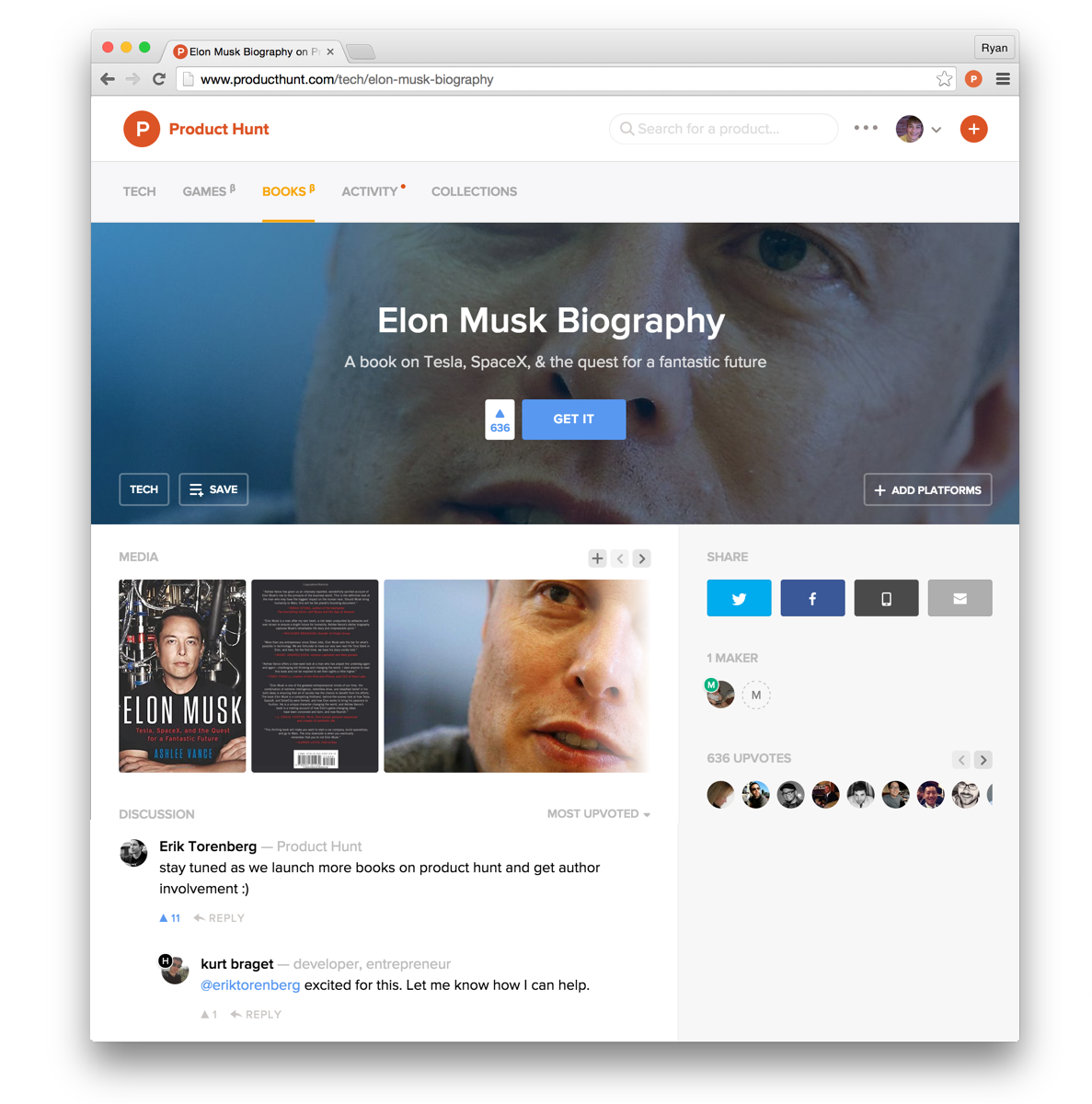 If you’re new to Product Hunt, it’s like Reddit or Digg, but specifically for “products” (read this article for more details). This term has been loosely used to address almost anything recently launched by a company, such as apps, hardware, games, and now (obviously) books. Founder Ryan Hoover is said to have raised $6.1 million in venture capital under the premise that he needs to look for early adopters in a myriad of industries, not just in tech. This includes fashion, music, gaming, and now books.
