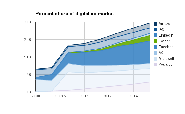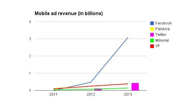 Google is obviously the monster in online as well as mobile ads. Facebook comes in a distant second. Twitter lags lags behind YouTube and Microsoft — yeah, Microsoft.