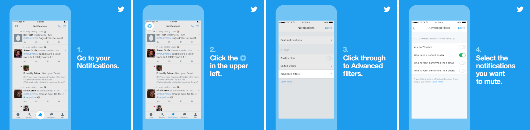 In 2015, Twitter first rolled out its quality filter in a bid to minimize abusive tweets that celebrities and verified individuals might see in their timeline. The following year, that feature became available to everyone, preventing “lower-quality content” from being shown. The company has added three new opt-in filters that people can use, limiting tweets from those who have a default profile photo (the iconic Twitter egg), unverified email address, or an unverified phone number.