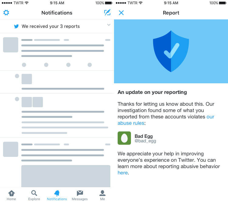 Updated as of 9:44a.m. Pacific on Wednesday: Clarified that Twitter is notifying you in-app of abuse report updates and has previously done so but through email.